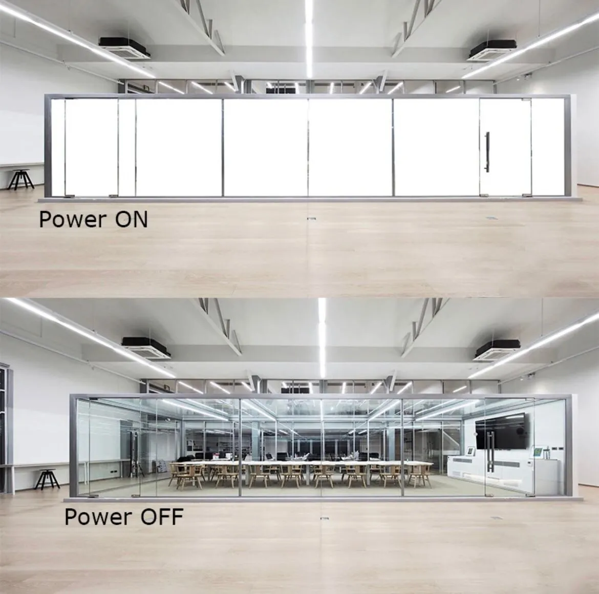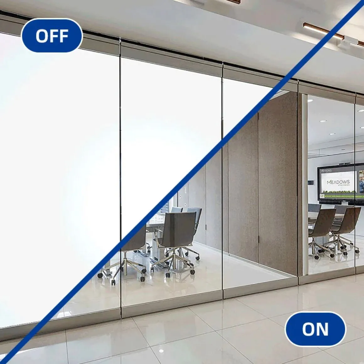 SMART GLASS FILM ini cocok untuk ruangan yang semi-konfidensial yang bisa diatur transparansi dan tingkat keburamannya sesuai kebutuhan. Selain itu, dapat membuat ruangan menjadi lebih estetik dan modern.
